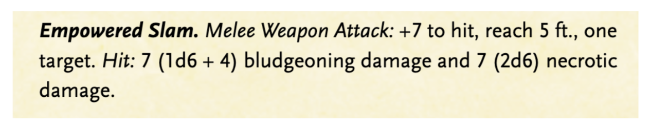 She has different zombie’s traits, and this would fit in great, especially if you want to start adding some necrotic damage.